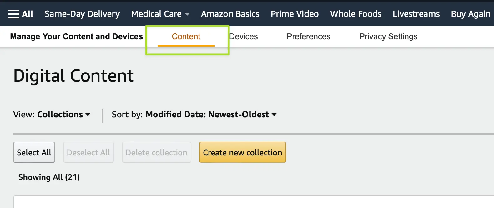Finally, provided the user made it through to creating their new collection, there is no indication on how to get back to where they were. The user needs to know that they have to click the already highlighted "Content" main navigation item, click back into their list of books, then find the book in question, and add the book to their new collection.
