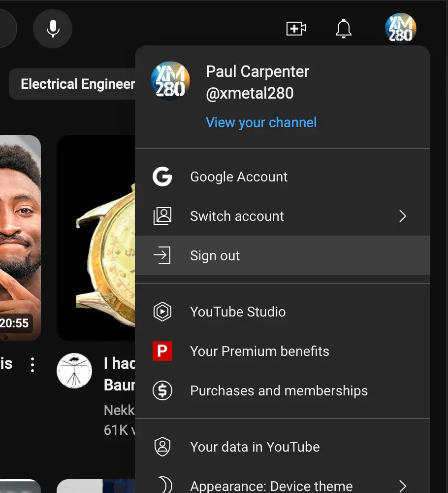 The main problem is that the Sign Out button has no confirmation step, if you click it you are instantly logged out of the site. But even more critically, because YouTube is a Google property, if you click that button you will also be signed out of your entire Google account with no warning! If you want to go to Gmail, or Google Docs, clicking this single button will tragically affect many other sites.